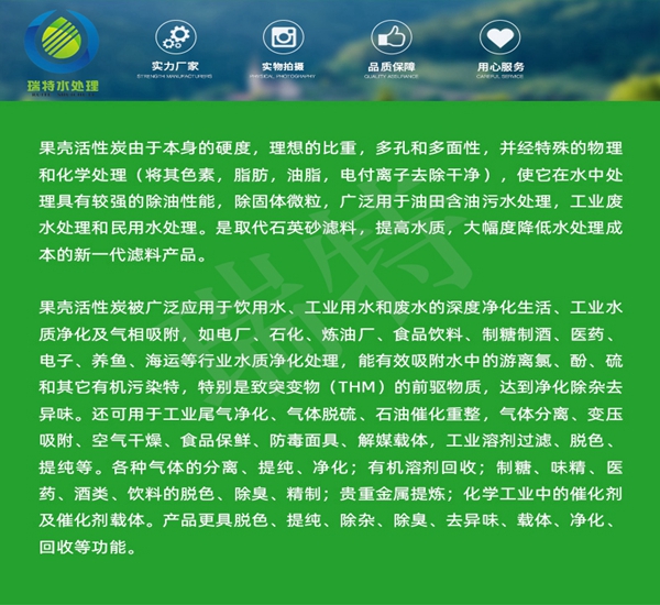 以上果殼活性炭產(chǎn)品信息由鞏義市瑞特水處理材料技術(shù)部編輯提供,轉(zhuǎn)載請(qǐng)說明文章出自鞏義瑞特水處理。