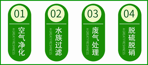 適用于大風(fēng)量,低濃度工廠有機(jī)廢氣(三苯及有毒有害氣體)治理。適用于室內(nèi)空氣凈化,餐飲油煙廢氣處理。空調(diào),冰箱,復(fù)印機(jī)等除異味。并可做為催化劑載體。用于氣相吸附類活性炭,苯、甲苯、二甲苯、丙酮、油氣、CS2等有機(jī)溶劑吸附與回收.香煙過濾嘴、裝修除味、室內(nèi)空氣凈化(甲醛,苯等有害氣體的去除),工業(yè)用氣的凈化(如CO2,N2等)、石化行業(yè)生產(chǎn)、天然氣凈化、脫硫、除臭、廢水的治理.生化、油漆工業(yè)、地下場(chǎng)所、皮革工廠、動(dòng)物飼養(yǎng)場(chǎng)所的空氣凈化、脫臭.煙道氣的臭氣吸附,硫化物吸附,汞蒸汽的去除、降低戴奧辛的生成。
