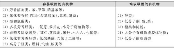 活性炭濾料容易和難以吸附的有機(jī)物如下圖 ↓